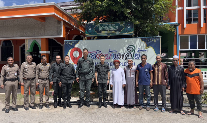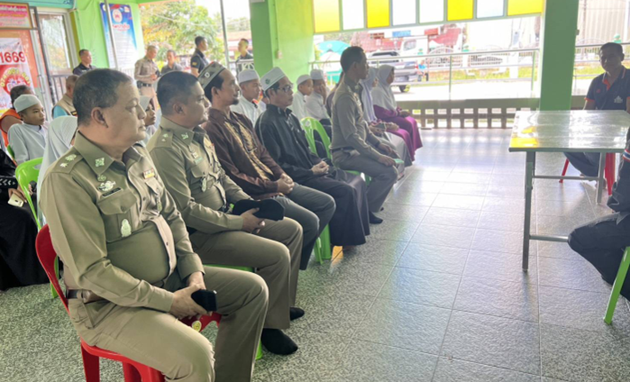 วันที่ 03 พ.ย.2566 เวลา 11.00 น. พล.ต.ต.เชาวลิต เลี้ยงสุพงศ์ ผบก.ภ.จว.สงขลา , พ.ต.อ.สุวโรจน์ ลุณหวิทยานนท์ รอง ผบก ฯ ,พ.ต.อ.อัครวุฒ ธานีรัตน์ รอง ผบกฯ ได้มาพบปะพูดคุย เยี่ยมเยียน และแนะนำตัวกับผู้นำศาสนา และผู้นำชุมชนในพื้นที เนื่องในโอกาสได้มารับตำแหน่งใหม่พร้อมกันนี้ ได้ร่วมพูดคุยรับฟังปัญหาและปรึกษาหารือและหาแนวทางแก้ไข ปัญหาที่เกิดขึ้นในพื้นที่ ณ มัสยิดบ้านพลีใต้ หมูู่ที่3 ต.นาทวี อ.นาทวี โดยมี พ.ต.อ. นิสิต สาแล๊ะ ผกก สภ.นาทวี .พ.ต.ท. ชัยชนะ สิทธิศักดิ์ รอง ผกก.ปฯ , พ.ต.ท. ศรัญย์ภ้ทร สิทธินุ่น รอง ผกก สส.ฯ , พ.ต.ท. ชัยญากรณ์ ศรีสัมฤทธิ์ สวปฯ , พ.ต.ท. สุธรรม อินทร์ขาว สว.สสฯ, นาย ดนรอเฉด ขะเดหรี กำนันตำบลนาทวี ฯ นายดนสุโกด ใหนเด อีหม่ามประจำมัสยิดบ้านพลีใต้ฯ นายหลี สันเหล๊ะ กต.ตร.สภ.นาทวี ครูและนักเรียนในพื้นที่ ร่วมให้การต้อนรับ