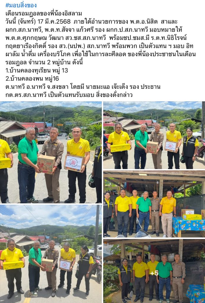 มอบสิ่งของให้ประชาชนในเดือนรอมฎอน 17 มีนาคม 2568 โดย admin / ข่าวประชาสัมพันธ์,ข่าวกิจกรรม,ข่าวประชาสัมพันธ์,ประชาสัมพันธ์ข้อมูลข่าวสาร Post Views: 25