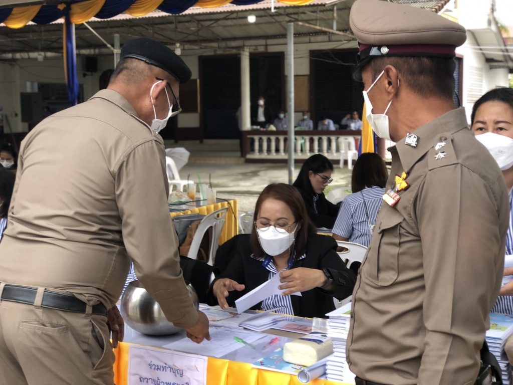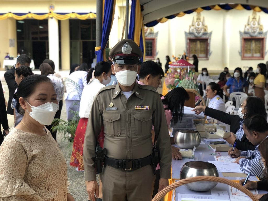 วัน 22 ต.ค.2565 เวลา 0900 -1100 น.ภายใต้การอำนวยการ พ.ต.อ.นิสิต สาและ ผกก.สภ.นาทวี ,พ.ต.ท.ทรงโปรด พรหมสุทธิ์ รอง ผกก.ป.ฯ,พ.ต.ท.ศรัณย์ภัทร์ สุทธินุ่นรอง ผกก สส.ฯ มอบหมาย พ.ต.ท.ทินกร เพิ่มศรี สว.สส.ฯ พร้อม จนท.ตร.สภ.นาทวี ร่วมพิธีถวายผ้าพระกฐินพระราชทาน ณ วัดในวัง พระอารามหลวง อ.นาทวี จว.สงขลา โดย นายบุญส่งค์ ทัพชัยยุทธ์ เลขาธิการสำนักงานประกันสังคม เป็นประธานนำผ้าพระกฐินถวาย